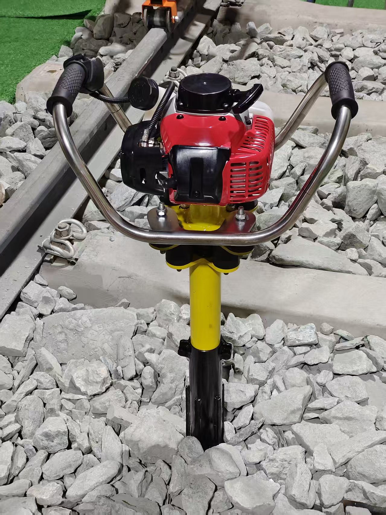 建内燃捣固镐是铁路道床养护的一种小型养路机械,主要适用于道岔及繁忙线路上利用列车间隔进行石渣的捣固作业,它具有重量轻、体积小、性能优良、上下道方便迅速、操作轻便等优点。